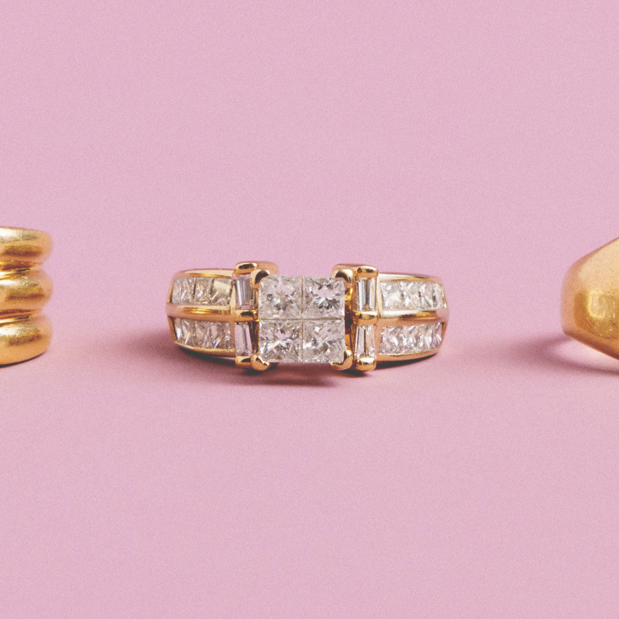 Big, rocky rings for the rugged winter, is what we say. Mixed metals, lots of diamonds, paired with cashmere, fair isle, oversized denim and combat boots.